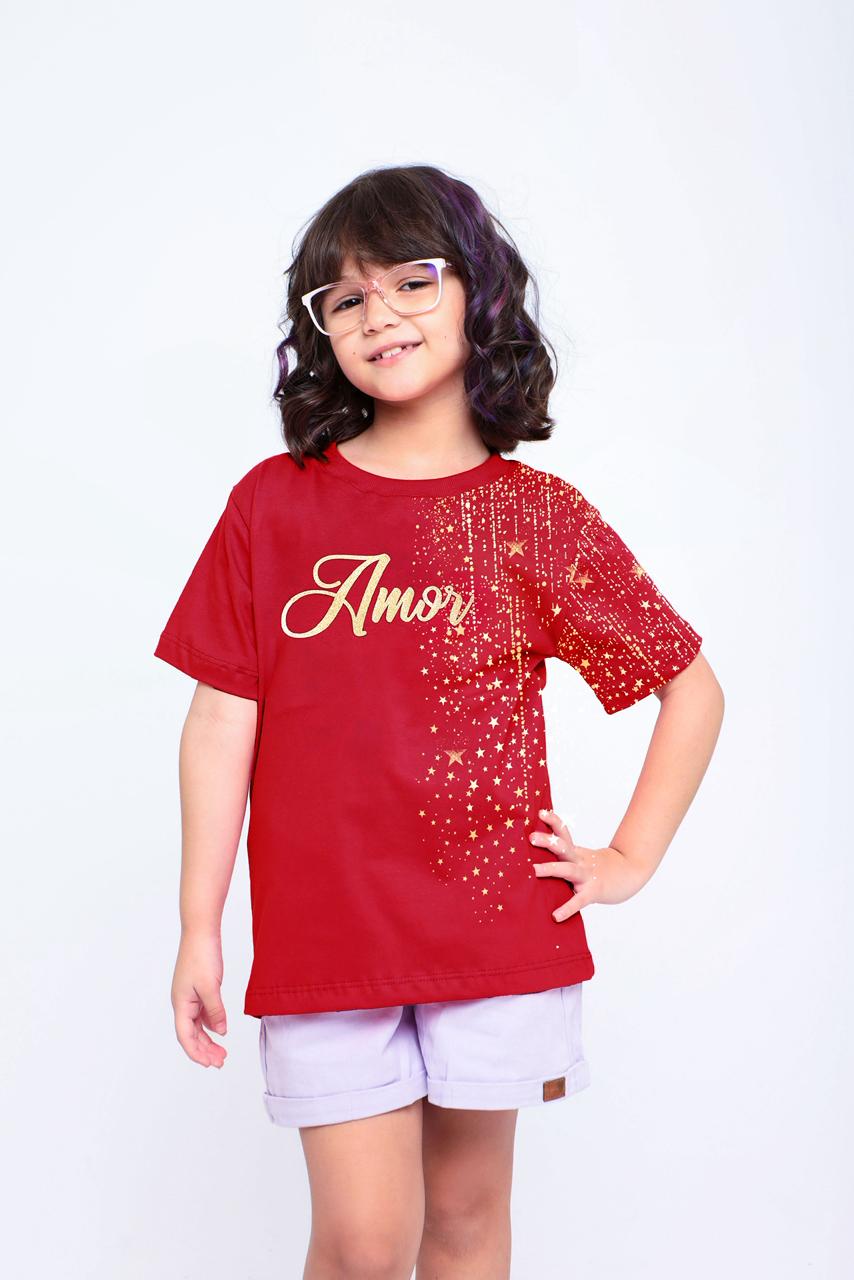 Camiseta infantil Coleção de Fim de ano Amor vermelha